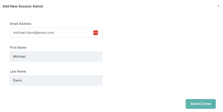 There are two ways to create your session admins list - by manually creating individual admins or by using the bulk import option. Let's look at the first option in more details below.