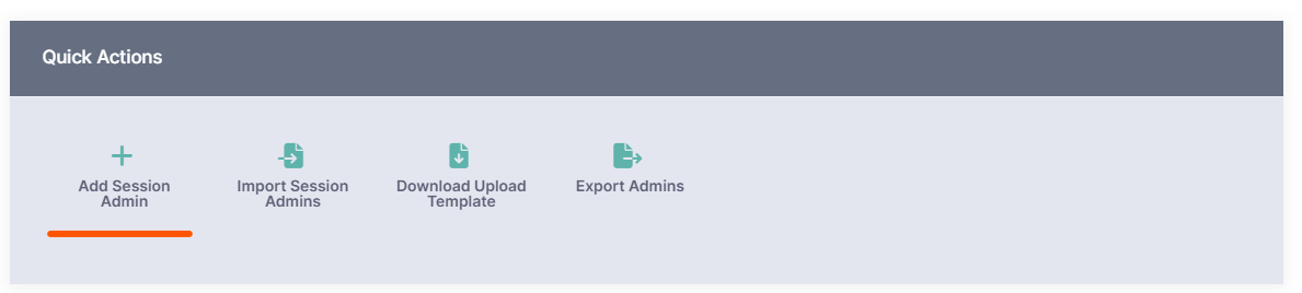 2. Click on the "Add Session Admin" button available in the "Quick Actions" menu.