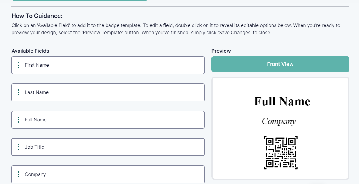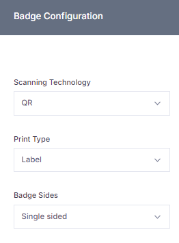 • Selecting the QR option means that you would like your badge design to feature a QR code that can be scanned throughout the event.