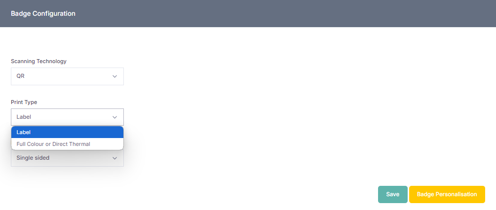 • Selecting the Full Colour or Direct Thermal option means that you would prefer for the attendees' information to be directly printed onto the badges at your event.