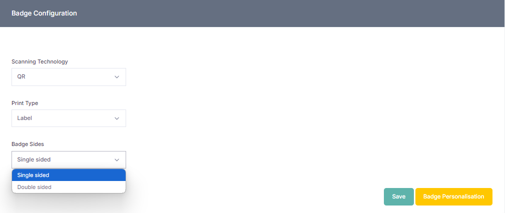 • Single Sided means that personalised attendee information will be present on only one of their badge's sides.