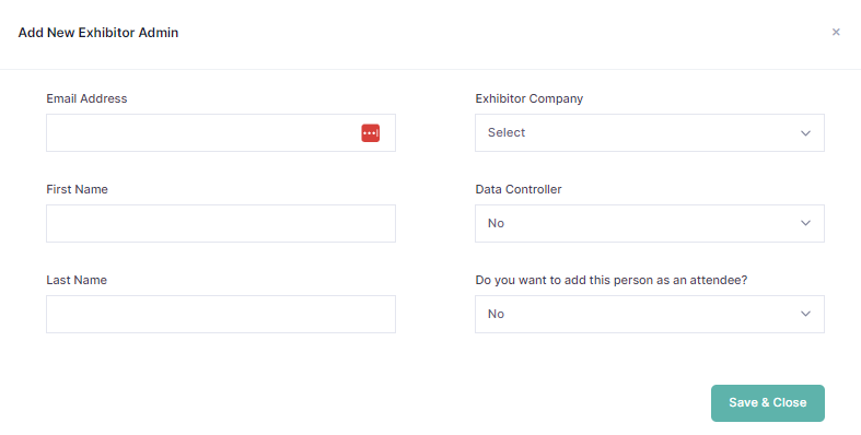• Exhibitor Company - Select the associated exhibitor company from the dropdown menu.