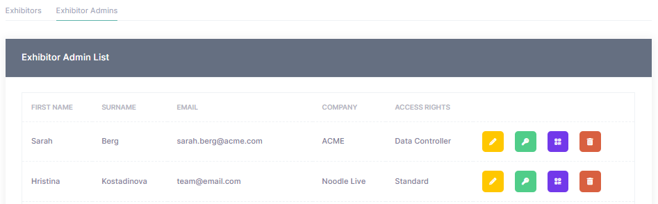 Similarly to creating Exhibitor Companies, Exhibitor Admins are managed under the Exhibitors section of the platform.