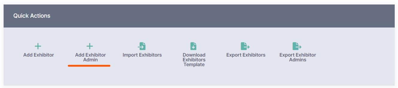 1. Please click on the “Add Exhibitor Admin” button under the “Quick Actions” section