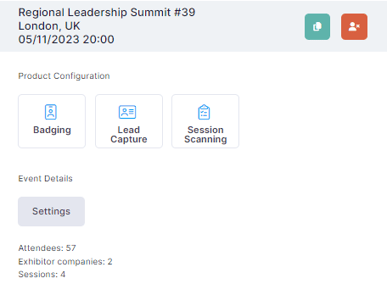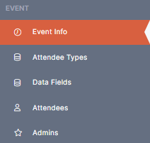 This will open the Event Info page where you can find an overview of all previously defined event details you have configured during the event creation process as well as the left hand side navigation bar.