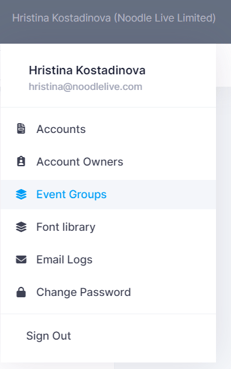 You can manage the Event Groups under your account by clicking on your name at the top right of the page and then navigating to the Event Groups section.