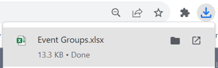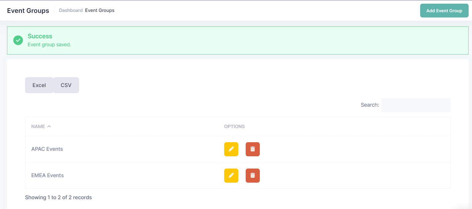 You can also export the list of your already available event groups either as a .CSV or an .XLSX file.
