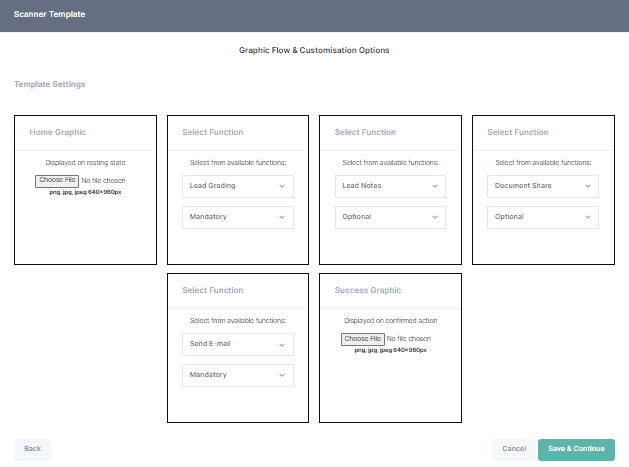 6. On the next page you will see an overview of the scanner flow setup. Here you can upload your screen graphics and further customise the scanner functions.