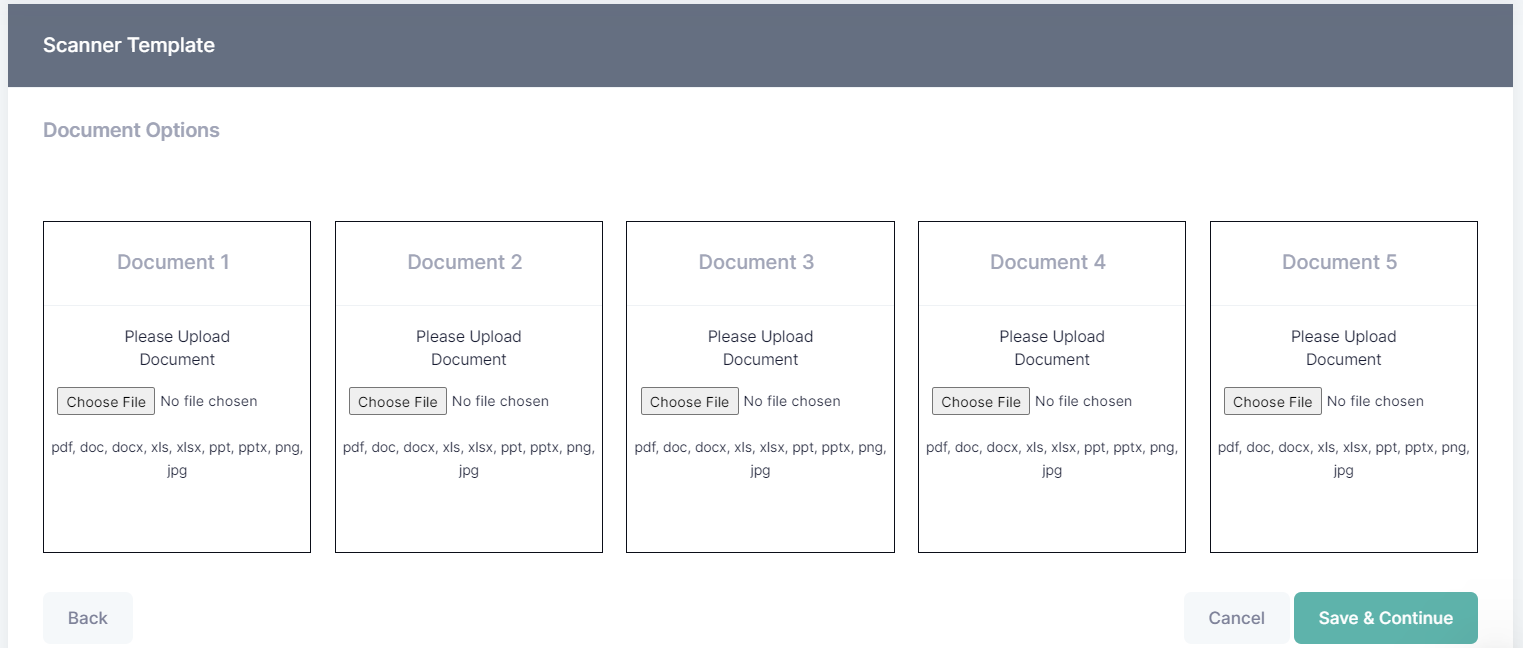 Upload at least one document in a supported format / extension and click on "Save & Continue".