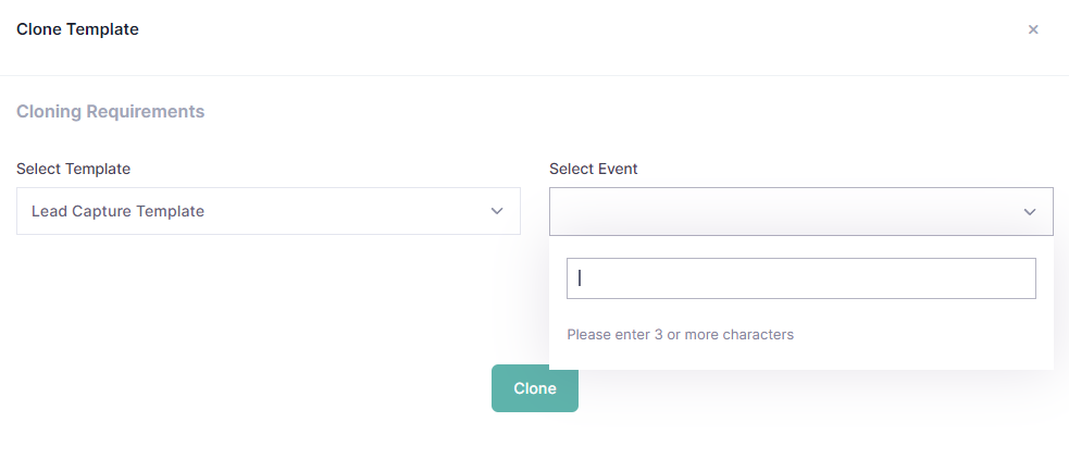 If you would like to use the same lead capture template on multiple events created under the same Event Group, you can easily clone a template from one event to another.