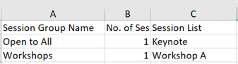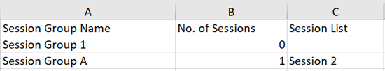 The exported file will contain a list with the relevant session groups, the total number of assigned sessions to each group and the titles of each session.