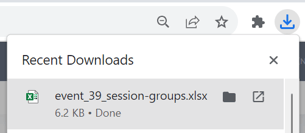 4. A spreadsheet containing a list with the selected session groups will be automatically downloaded to your computer.