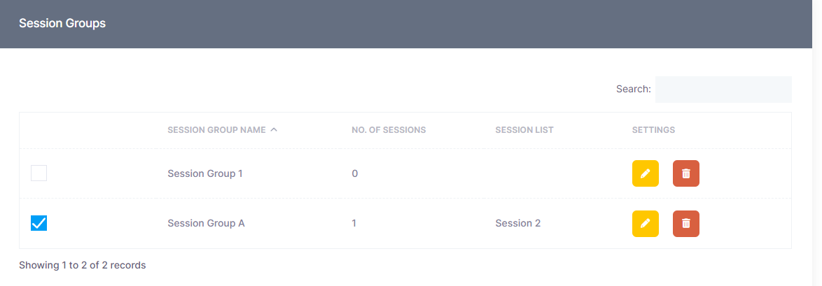 1. In the “Session Groups” table, select all groups you would like to export