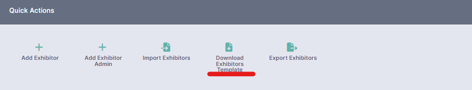1. Click the “Download Exhibitors Template” button available in the “Quick Actions” menu