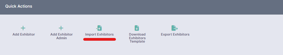 1. Click on the “Import Exhibitors” button under the “Quick Actions” menu.