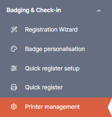 1. On the left-hand side menu, under the Badging & Check-in section, click on Printer Management