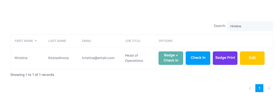 • Badge + Check In - Allows for simultaneously checking an attendee in the moment their badge is printed.