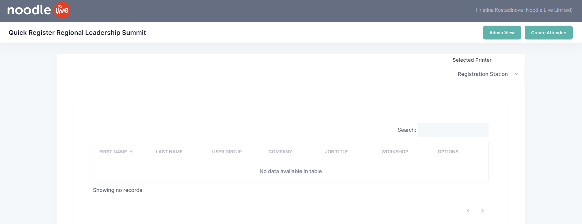 The Quick Register Web App is the dedicated part of the Noodle Live Portal which you will use onsite to print event attendees' badges and register new delegates.
