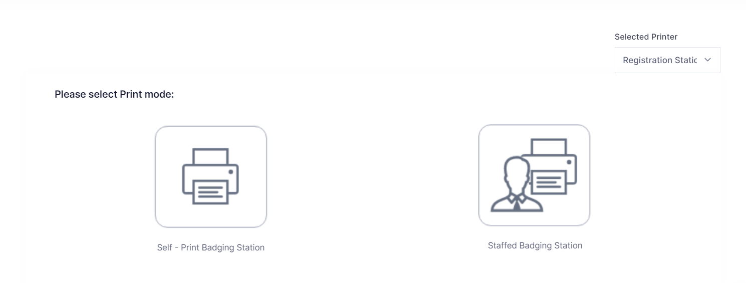 Selecting Self-Print Badging Station will launch the relevant version of the Quick Register Web App.