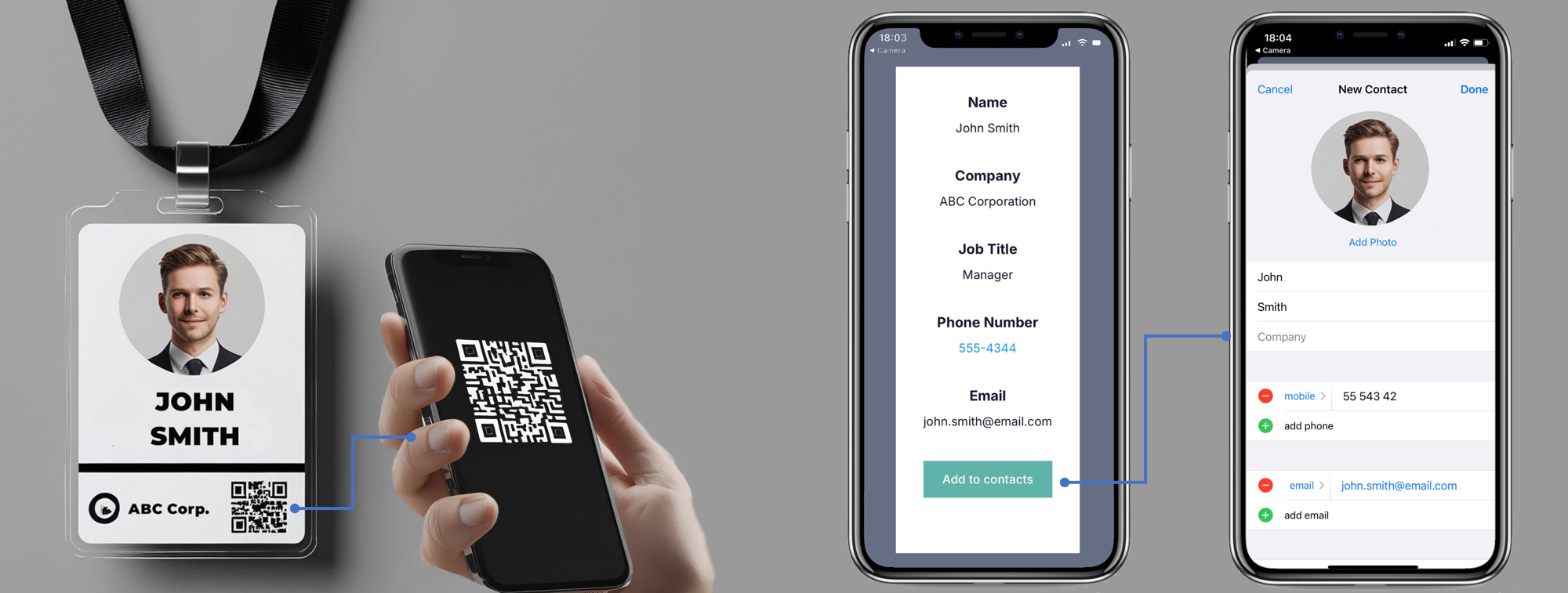 Virtual Business Cards (vCards) are a simple, standardized way of sharing personal contact information via QR code. These can be printed directly onto badges, making it easy for attendees to connect at your event.